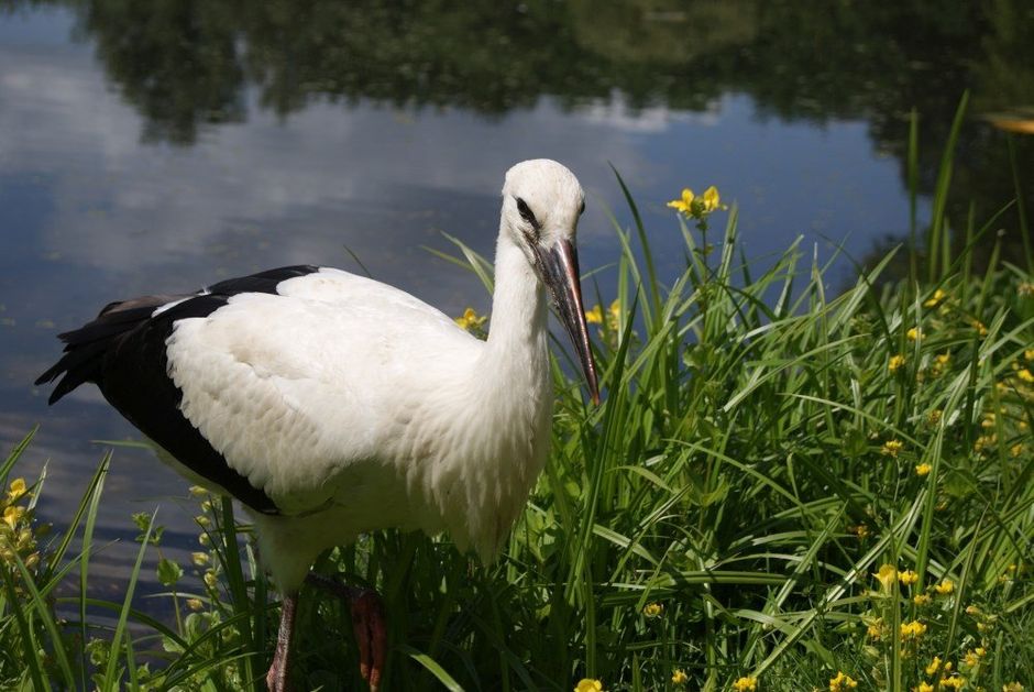 Ein Sommerabend am Seeufer, ein neugieriger Jungstorch – und ein